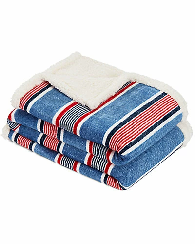 - Design details: Wrap yourself in comfort with the Nautica Center Coast Stripe Ultra Soft Plush Sherpa Blue Throw. This casual throw features a blue and red striped face with a super soft natural sherpa reverse. Lay this throw on your current bedding ensemble or keep warm on your living room couch. Throw is made of ultra soft cozy fleece and is machine washable for easy care. Throw dimensions: (70″L x 50″W).