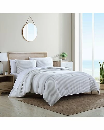 - Design details: woven herringbone texture for added dimension; medium weight which is great for year round use, comforter fill- 100% polyester: 7.75 oz. fill weight, shams include a zipper closure,, the nautica fairwater comforter set features bold grey and white horizontal striping that narrows to a smaller ticking stripe at the foot of the bed reversing to a solid grey ground