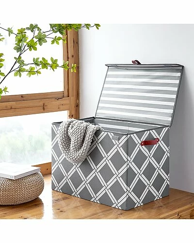 - This Nautica Folding Large Storage Trunk with Lid in Grey Box Weave offers a stylish and easily storable solution ideal for any space in your home. This storage trunk features a lid to keep contents concealed, durable reenforced handles and a convenient collapsible design for easy storage when not in use. The trendy neutral color pallet combined with the functionality of the piece make it the perfect storage solution for any space in your home.