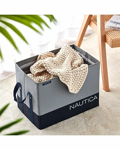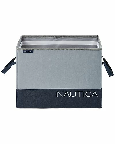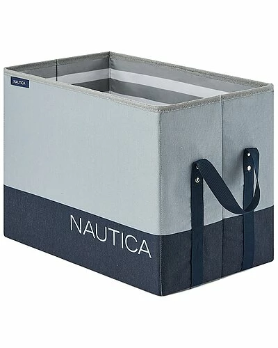 - This Nautica Folded Rectangle Bin in Grey Block offers the perfect solution to fashionably elevate your decor and organize your space. The durable reenforced handles make it easy to transport throughout the home, while the convenient collapsible design makes it easy to store when not in use. The trendy neutral color pallet combined with the functionality of the piece make it the perfect storage solution for any space in your home.