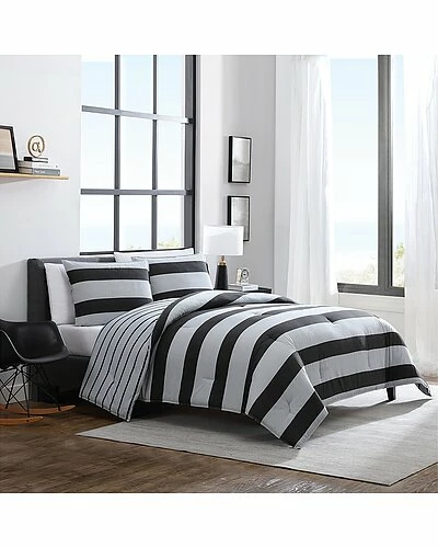 - Design details: extra softness and long lasting; made of durable and breathable cotton; medium weight- great for year round use and dorm bedding, comforter fill- 100% polyester for warmth weight: 8 oz., comforter only- no shams,oeko-tex certified – made thoughtfully and sustainably with non-toxic dyes, the nautica lawndale collection features bold black and grey alternating awning stripes for a sophisticated look; reversing to a smaller scale stripe in the same black on grey ground
