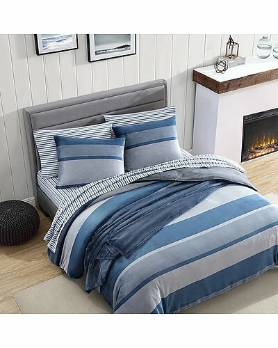 - Design details: extra softness and long lasting; made for durability; medium weight- 280 gsm face and reverse; great for cold weather use, comforter fill- 100% polyester for warmth weight: 6oz; knife edge comforter and shams, shams have bottom zipper closures for easy removal,oeko-tex certified – made thoughtfully and sustainably with non-toxic dyes, the nautica linden comforter set features a rich combination of navy with grey in horizontal varying stripes; reversing to a solid grey plush ground