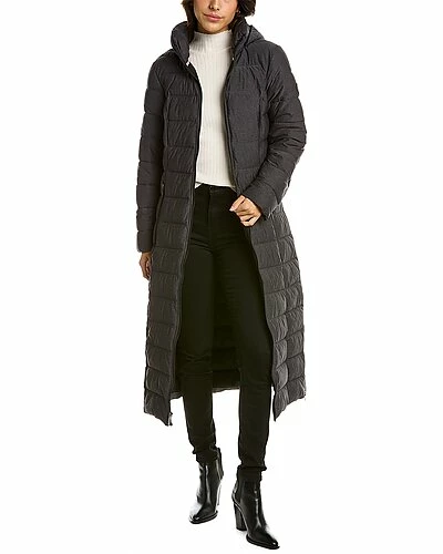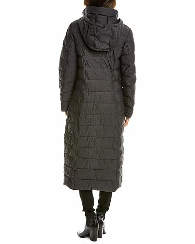 - Design details: quilted design, zipaway hood, two front zippered pockets and zippered side slits at hem