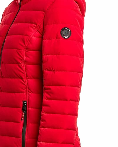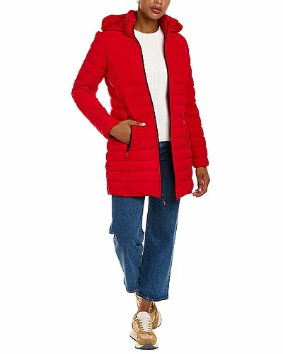 - Design details: barrel quilted design, stand-up collar, removable hood, zippered cuffs, two zippered front pockets, water resistant
