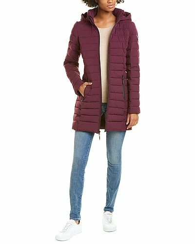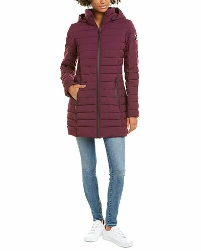 - Design details: barrel quilted design, stand-up collar, removable hood, zippered cuffs, two zippered front pockets, water resistant