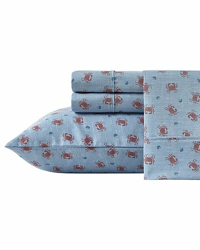 - Design details: brushed microfiber offers supreme comfort for a great night’s sleep; uses polyester filament which is also mainly used in sportswear, the fitted sheet is made with an elastic band that is on all four sides to ensure a snug fit to all mattress sizes; 15″ fitted sheet pocket depth (twin size is 12″ deep); fitted sheet fits mattress up to 18″ deep (twin size is 15″ deep),coordinating pillowcases have self hem finish, performance sheet set with cooling properties including moisture wicking and quick dry features; moisture management through life of product- 50+ washes; chemical free and skin friendly- perfect for sensitive skin, the nautica mirelong sheet set features tossed red crabs with smaller navy seashells on a distressed light blue ground