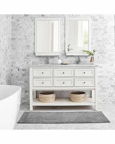 - Design details: this medium pile rug set instantly adds a touch a softness for any bathroom space, skid resistant backing, oeko tex certified meaning the product is made in an environmentally friendly and socially responsible way. this set is free of harmful chemicals and is safe for everyday use, the peniston bath rug runner features a solid dark grey tufted racetrack border