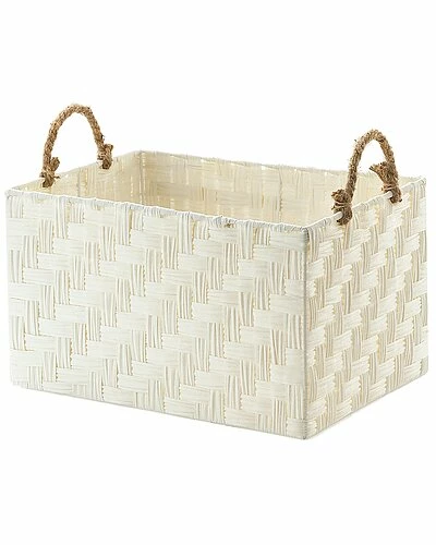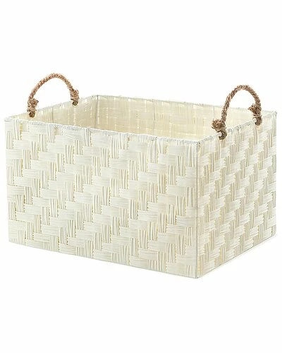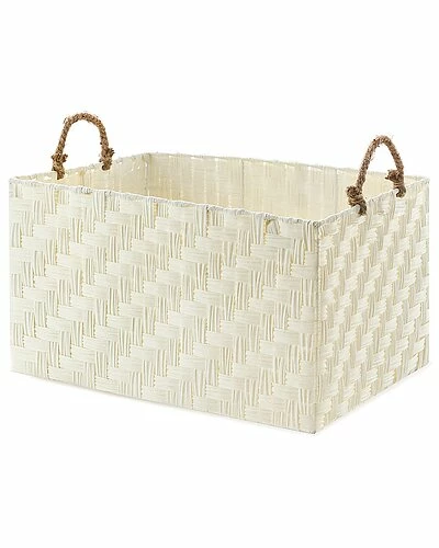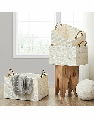 - This Nautica Set of Three Rectangle Storage Bins with Herringbone Weave and Rope Handles in White offer a refined storage solution to elevate our decor in any room of your home. These baskets are crafted in a beautiful faux-wicker with natural rope handle accents. Our rectangle design ensures no wasted space while our neutral color makes this a trendy storage option perfect for a variety of spaces in your home.