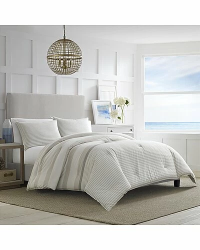- Design details: bring new life to your bedding ensemble with the saybrook collection from nautica. a classic nautical stripe is soft and tranquil in a neutral palette inspired by the colors of a sandbar. a sturdy cotton twill weave ensures durability as well as comfort and the yarn dye palette of warm ivory and beige with an accent of mocha is both serene and stylish. decorative accent pieces include mitered border european shams with decorative top-stitching, a chevron-quilted ivory canvas pillow with rope trim, and a yarn dye stripe bolster pillow with covered buttons. a mocha basket weave knit pillow adds texture and a warm color accent. layer in our baird blanket for additional warmth and textural interest. set is machine washable for easy care. the duvet cover is made with inner corner ties to secure the duvet from shifting during use and is finished with a button closure. duvet insert is not included. twin duvet set includes: one duvet cover (88″l x 68″w) and one sham (21″l x 27″w). full/queen duvet set includes: one duvet cover (88″l x 88″w) and two shams (21″l x 27″w). king duvet set includes: one duvet cover (88″l x 104″w) and two shams (21″l x 37″w).