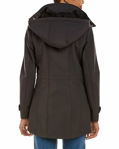 - Design details: stand collar, detachable fleece-lined hood, two front zippered pocket, strap detail at cuffs and snap details at hem
