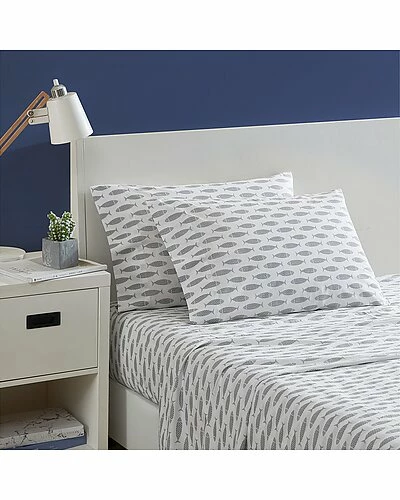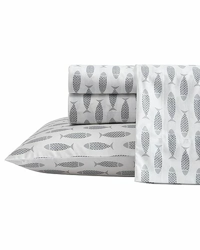 - Design details: single ply sheet- woven to be lightweight, yet durable; made with a percale weave for a cool, crisp feel; the threads are woven in a tight weave to ensure smoothness on all sets, the fitted sheet is made with an elastic band that is on all four sides to ensure a snug fit to all mattress sizes; 15″ sheet pocket depth (12″ for twin size); fitted sheet fits mattress up to 18″ deep (15″ for twin size),pillowcases feature a 4″ self hem, oeko-tex certified – made thoughtfully and sustainably with non-toxic dyes, the nautica woodblock fish sheet features fish motifs neatly stacked in shades of grey on a white ground